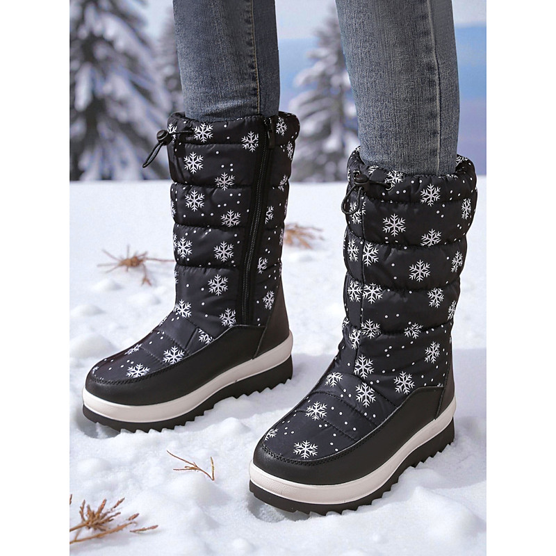 Women's White Snow Boots – Waterproof Warm Winter Boots with Snowflake Print, Anti-Slip Sole for Outdoor Snow and Holiday Trips