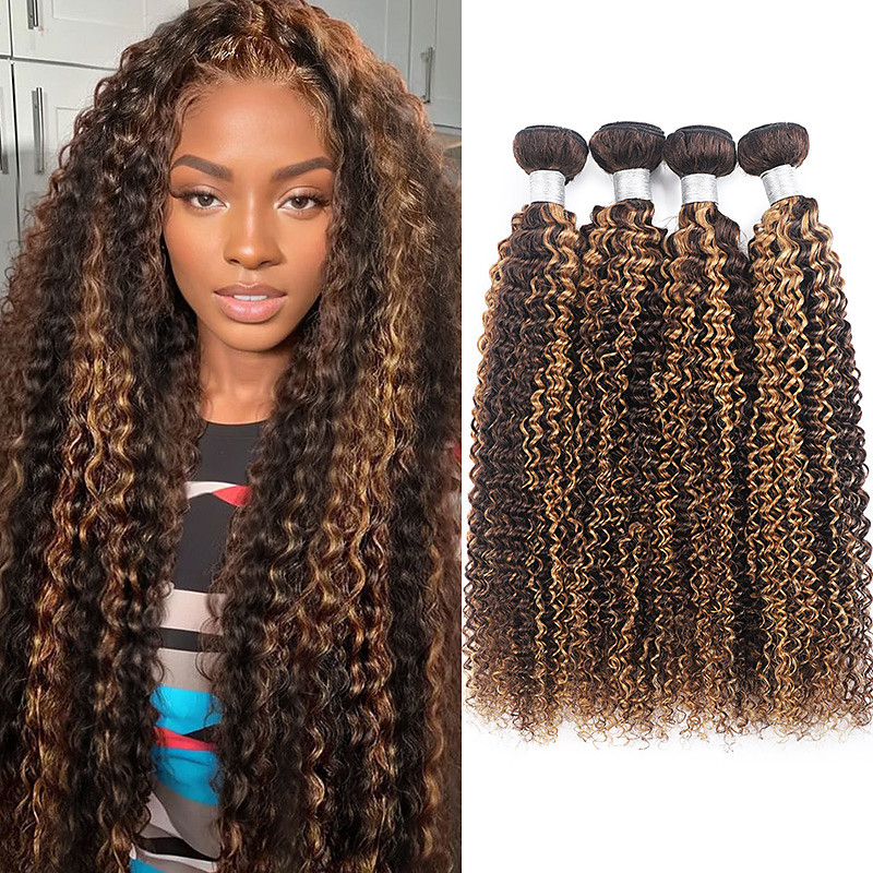 P4/27# Highlight Curly Wave Bundles Human Hair (18 18 20 20 Inches Curly Wave 4 Bundles) Brazilian Human Hair for Black Women