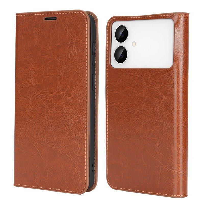 Crazy Horse Samsung Galaxy S26 Edge Plånboksfodral Äkta Läder - Ljusbrun