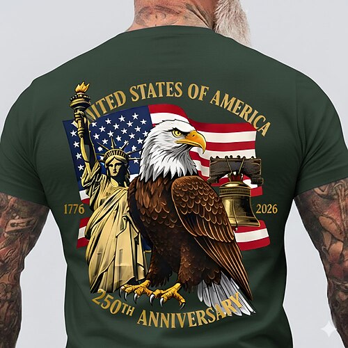 4 luglio 2026 250° Giorno della Memoria Maglietta a Maniche Corte con Stampa 3D Bandiera Statunitense Collo Giro Uomo Stile Quotidiano