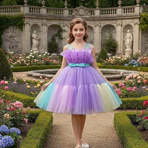 Abito da damigella d'onore bambina Ragazze Abito formale Abiti da sposa Feste Matrimonio Formale Principessa Patchwork Rete Sfumatura Senza Maniche Girocollo Rosa Azzurro cielo Dai 4 anni in su
