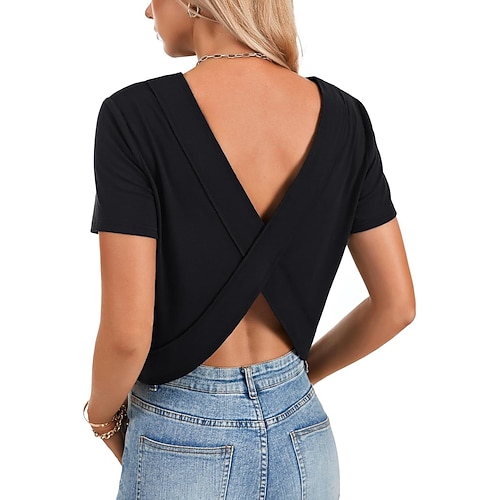 Per donna Maglietta Tinta unica Classico Casual Manica Corta Girocollo Top Regolari Quotidiano Uscire Weekend Nero Bianco Rosa Azzurro cielo Rosa Estate Primavera
