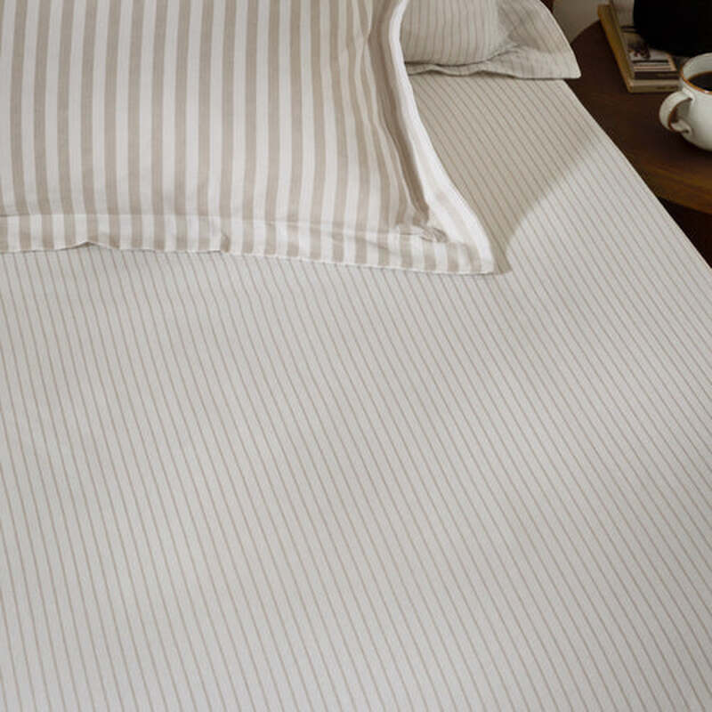 Yard Fitted Sheet Hebden Narrow Stripe 100% Cotton Natural Super King
