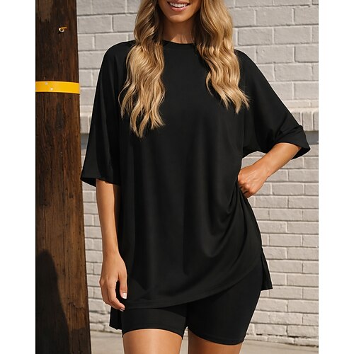 Damen Trainingsanzug Pullover Trainingsshorts 2 teilig mit Tasche Einfarbig Sportbekleidungsset Sommer Frühling Schwarz Weiß Fitnesstraining Leger Outdoor Feuchtigkeitsableitend Atmungsaktiv Kurzarm