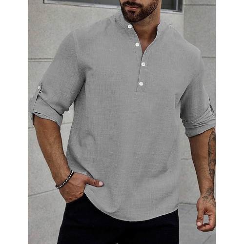 Per uomo Camicia di lino Camicia popover Camicia casual Camicia da Spiaggia Camicia con colletto alla coreana Semplice Casuale Abbigliamento casual alla moda Nero Bianco Rosa Azzurro cielo Manica