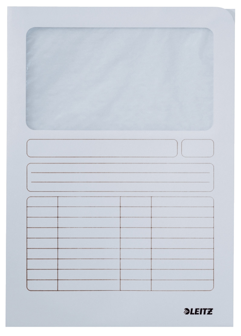 LEITZ Sichtmappe, A4, oben und rechte Seite offen, Karton, 100 Stück, weiß