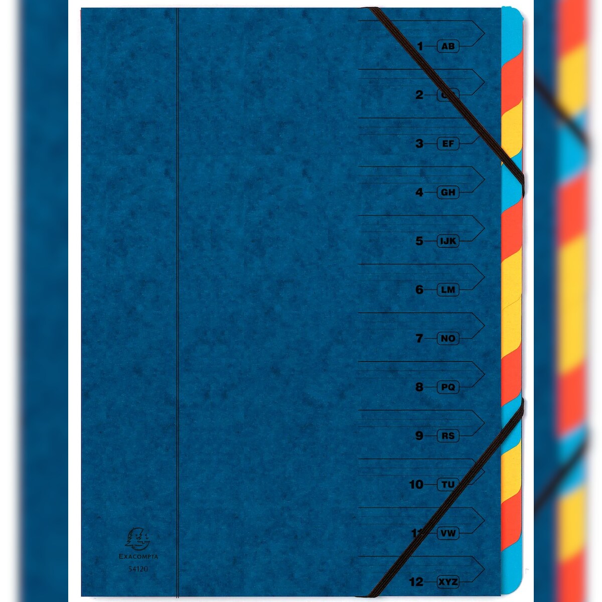 Exacompta 54122E 8x Ordnungsmappe aus Colorspan-Karton 355g/m2 mit Gummizug, 12 Fächer, für Format DIN A4 - Blau