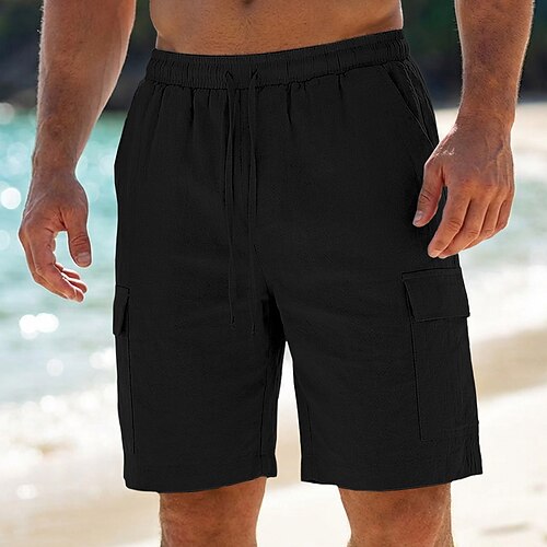 Per uomo Pantaloncini cargo Shorts Shorts di Lino Pantaloncini Estivi Shorts da Spiaggia Coulisse Elastico in vita Multi-tasche Semplice Tinta unita Corto All'aperto Spiaggia Vacanza Hawaiano Nero