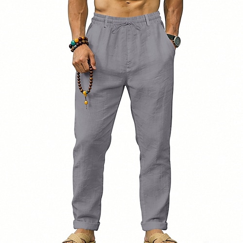 Per uomo Pantaloni di Lino Pantaloni Pantaloni casual Pantaloni Estivi Coulisse Elastico in vita Semplice Comodità Traspirante Lunghezza intera Casuale Quotidiano All'aperto Vacanza Moda Blu Nero