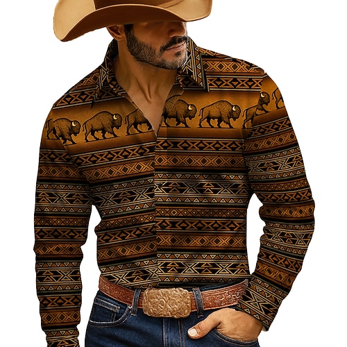 Per uomo Buffalo Plaid Cowboy Cultura indiana Camicia Camicia Western Camicia con Bottoni Manica Lunga Vintage Retrò All'aperto Casuale Abbigliamento da lavoro Primavera Autunno Collo ripiegato