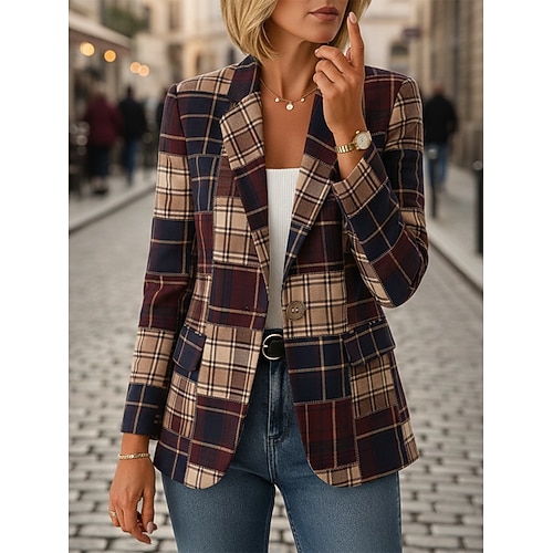 Per donna Blazer Caldo Confortevole Tasca Bottoni Stampato Vintage Quotidiano Casual Plaid Formale Ufficio Casuale Monopetto Regolare Bavero classico Vestibilità regolare Manica Lunga Capispalla