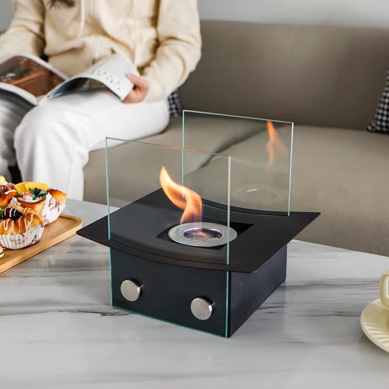 Portable Ventless Fireplace Tabletop Fire Pit Bowl Pot with 2 Sided Glass Clean Burning Bio Ethanol for Patio Parties Events