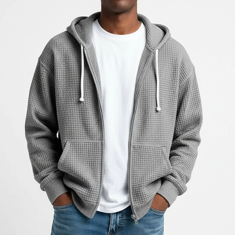 Men's Hoodie Full Zip Hoodie Waffle Hoodies White Light Green Navy Blue Dark Green Purple Hooded Plain Zip Up Textured Casual Daily Sports Outdoor Streetwear Cool Sportswear Spring Fall Clothing