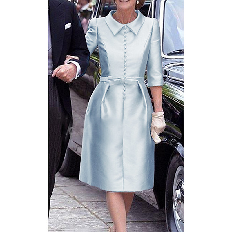 Sheath Column Knee Length Party Dress Cocktail Dress Wedding Guest Dress Mother of the Bride Dress 3/4 Length Sleeve Shirt Collar Elegant Minimalist Wedding Guest Cocktail Party Formal Evening
