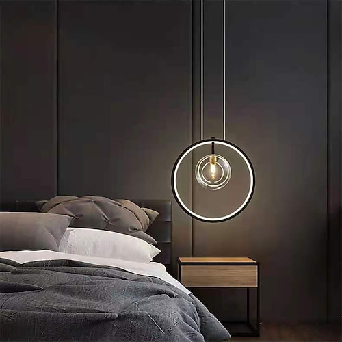 1 luce 60cm lampada a sospensione a led cerchio in alluminio finiture verniciate dimmerabile 30w per sala da pranzo camera da letto con paralume in acrilico nero caffè oro bianco