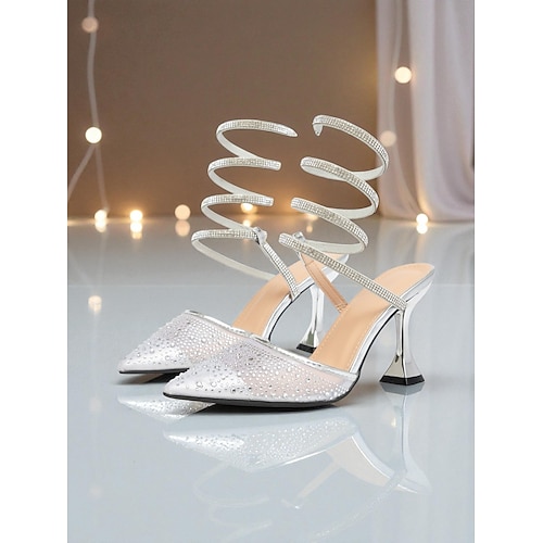 sandali da donna con tacco alto e cinturino a spirale in strass - scarpe da festa con punta scintillante e tacchi svasati unici per serate, cocktail ed eventi formali