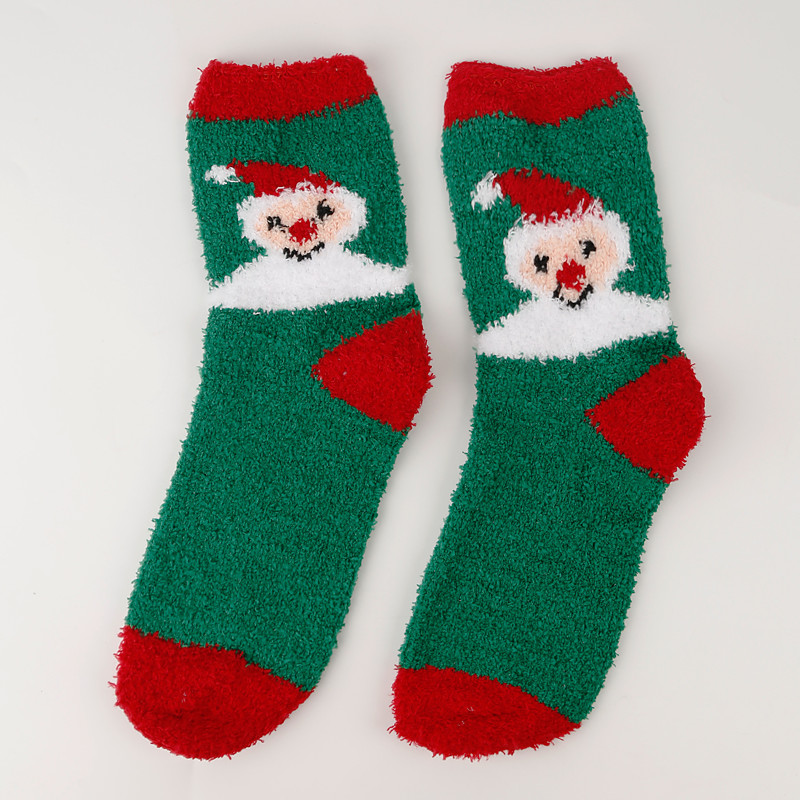 Christmas Socks for Women, Thick Coral Fleece Floor Socks, Non-Shedding Plush Socks with Reindeer Santa Claus Design, Cozy Warm Holiday Socks