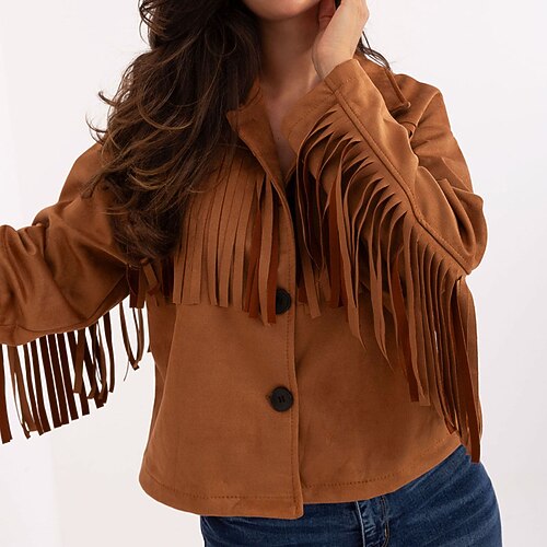 Per donna Giacca di Jeans Caldo Confortevole Nappa Bottoni Vintage Casual Tinta unica Vacanza Streetwear Casuale Abbigliamento quotidiano Corto Collo ripiegato Vestibilità regolare Manica Lunga