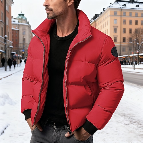 Per uomo Giacca imbottita Imbottito Trapuntata Natale All'aperto Feste Regolare Neutro Moda Quotidiano Inverno Tinta unica Nero Giallo Blu marino Verde Piumino