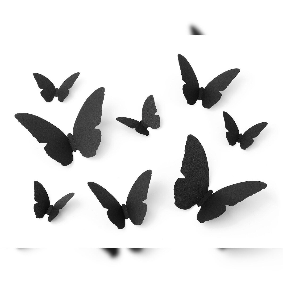 PartyDeco 30 Aufkleber Nachtfalter 6-12cm Papier - Gruselige 3D Sticker Motten Partydeko Halloween Gruselparty Gothic Spukhaus Wanddeko Schmetterlinge Schwarz