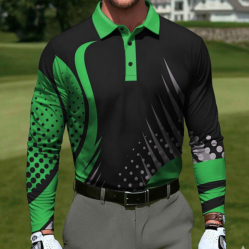 Men's Geometric Golf Sports Polo Shirts Long Sleeve Polo Shirts Lapel Casual Outdoor Athleisure Daily Wear 3D Print Buttons Spring Fall Blue Yellow Red