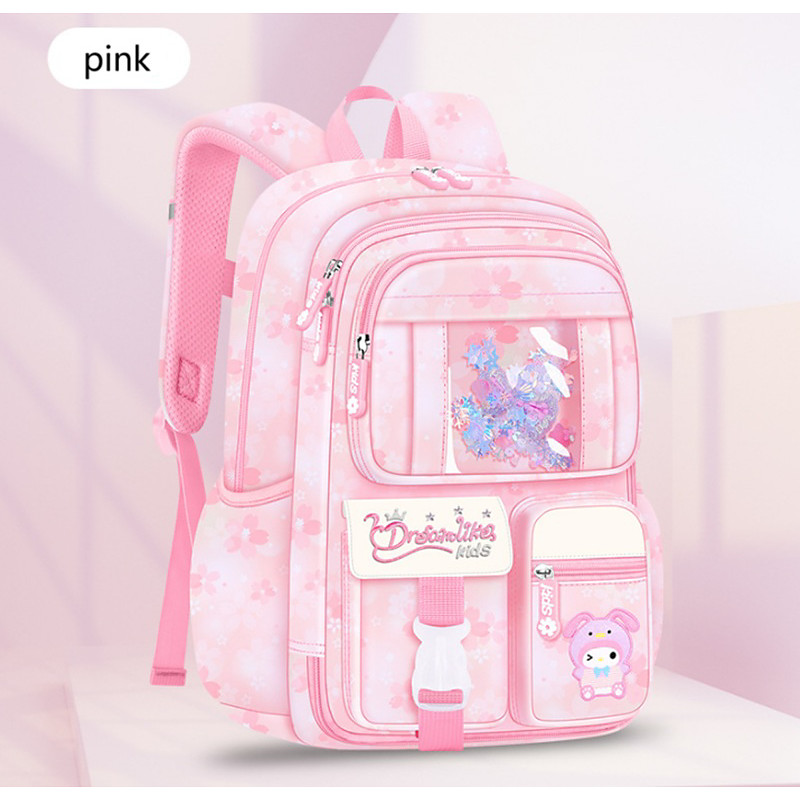 Girls' Cute Cartoon Backpack – Dreamlike Kids School Bag with Bunny Print and Multiple Pockets for Elementary Students