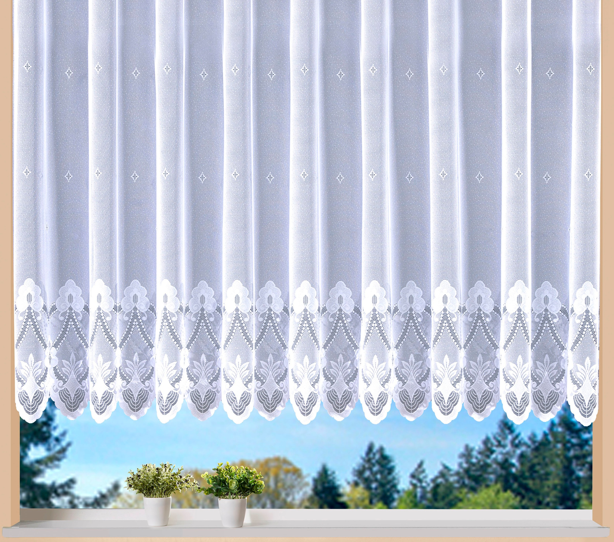 Gardine WECKBRODT "Weimar" Gr. 17, weiß, B:600cm H:220cm, Jacquard, Polyester, Gardinen, Jacquard, floral, Halbtransparent, Sockel, Bordüre, gebogt, Store
