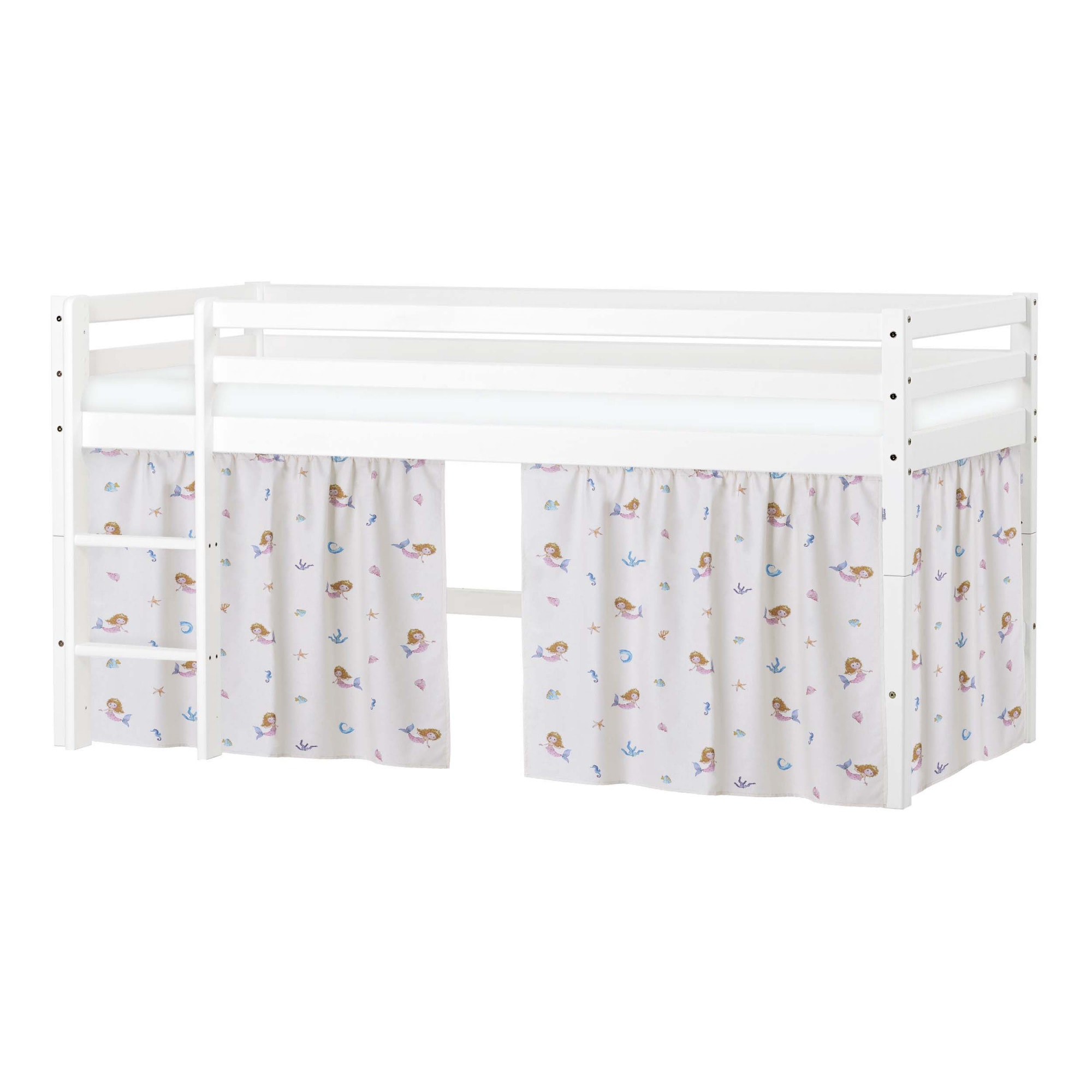 Spielbett HOPPEKIDS "ECO Dream, Hochbett, umbaubar in Einzelbett", beige, B:101cm H:105cm L:208cm, Vorhang: 100% Baumwolle, Matratzenbezug: 100% Baumwolle, Matratze: Schaum, Betten, Massivholzbett mit Meerjungfrau-Vorhang, Matratze & 2 Größen wählbar