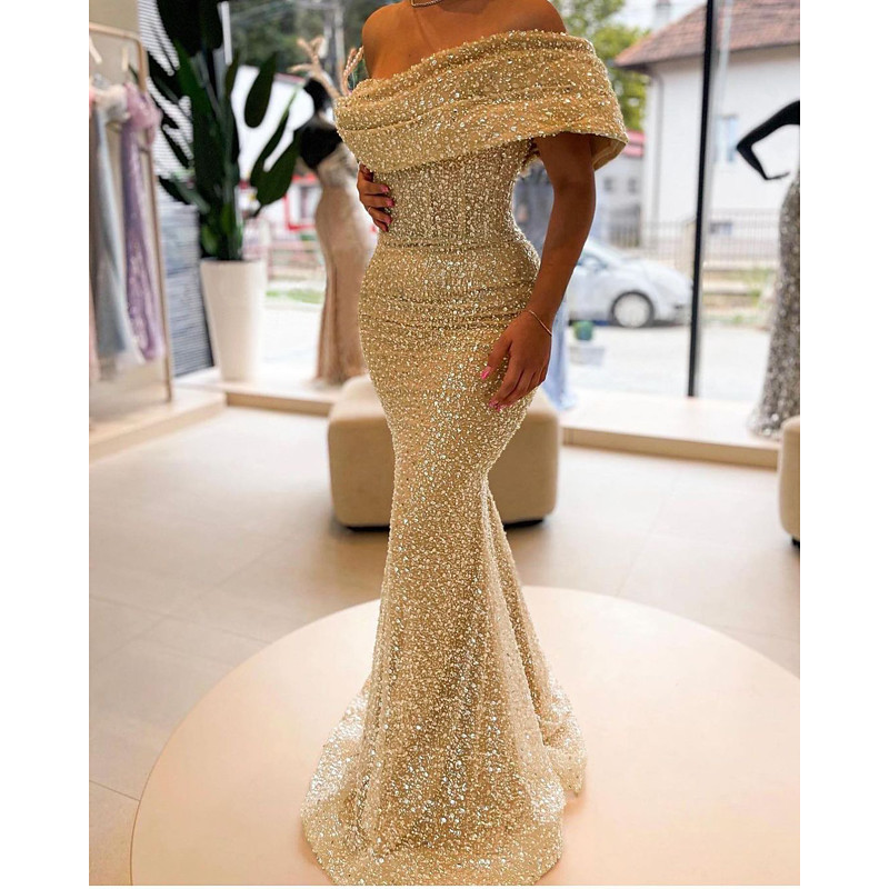Mermaid Trumpet Floor Length Prom Dresses Evening Gown Ball Gown Formal Dress Elegant Sparkle Sleeveless Off Shoulder Formal Sequined with Sequin
