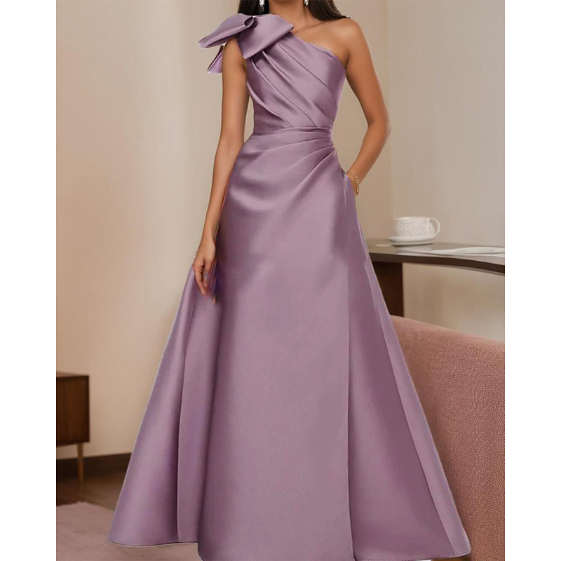 A-Line Floor Length Evening Gown Ball Gown Formal Dress Elegant Party Sleeveless One Shoulder Evening Party Garden Party Satin with Bow(s) Pleats