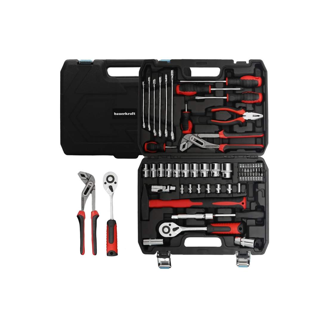 58-delers verktøysett med skiftenøkler, skrutrekkere og tang