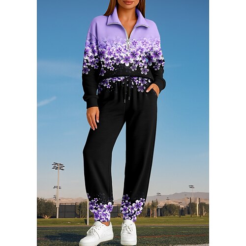 Per uomo Tuta Da Ginnastica Tuta da ginnastica Set di felpe Giallo Blu Viola Azzurro Grigio Girocollo Pop art Animali Lupo 2 pezzi Stampa Sportivo Informale Sport Stampa 3D Streetwear Abbigliamento