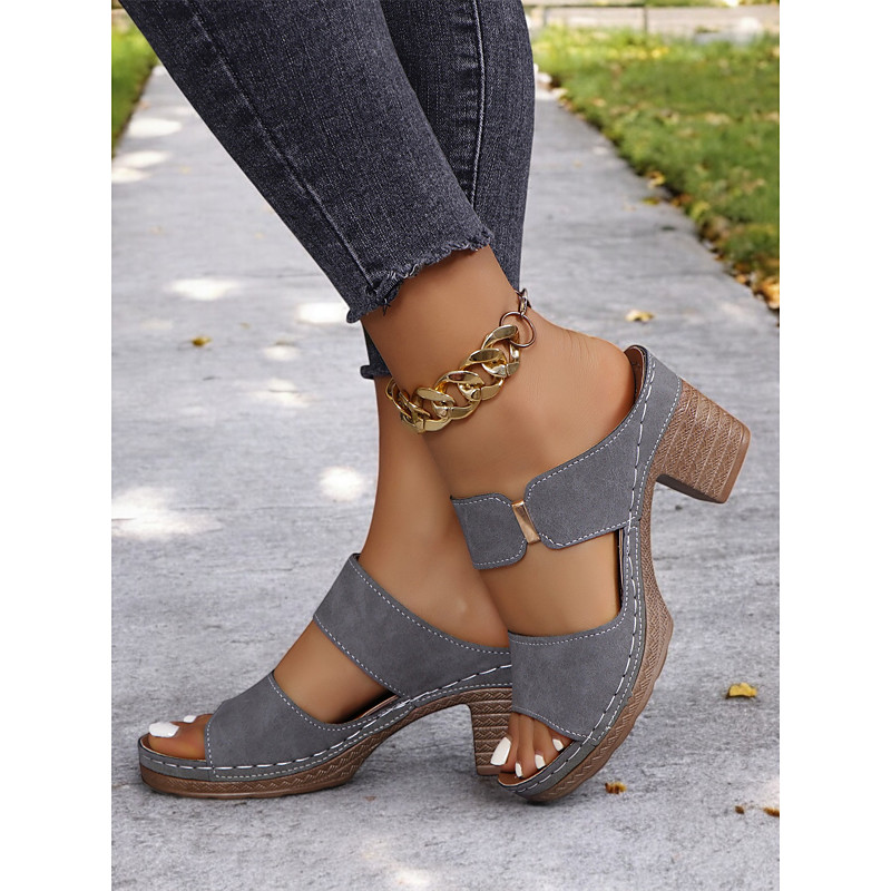 Women's Green Block Heel Double Straps Sandals - Comfortable Shoes for Casual Outings and Summer Wear