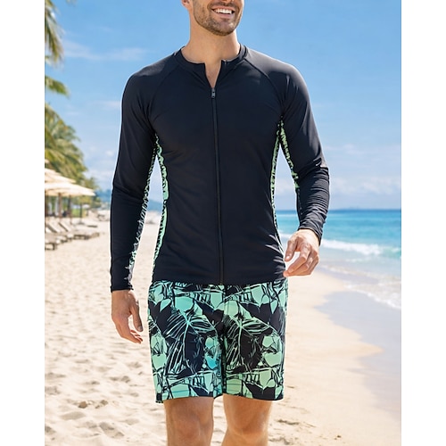 Per uomo Top sottomuta Costume da bagno 2 pezzi Tropicale Gamba lunga fino al ginocchio Protezione UV Asciugatura Rapida Elastico Manica Lunga Costume da Bagno Costume da bagno Surf Immersione
