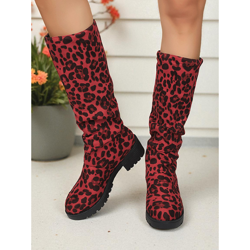 Women's Red Suede Slouch Knee High Boots – Pointed Toe Chunky Heel Long Boots for Party, Christmas, and Night Out Outfits