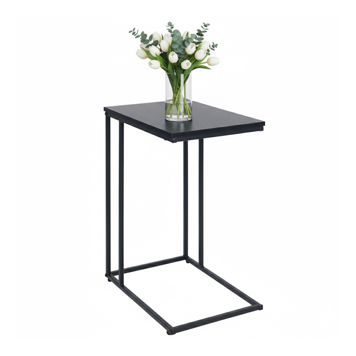 Relaxdays Beistelltisch, HxBxT: 64 x 50 x 35 cm, MDF, Eisen, C-Form, Sofatisch zum Unterschieben, Wohnzimmer, schwarz
