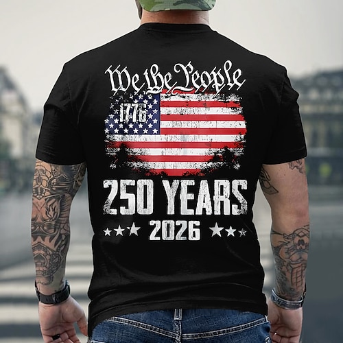 4 luglio 2026 250° Giorno della Memoria Maglietta Uomo 3D Print Bandiera degli Stati Uniti Collo a Giro Maglietta a Maniche Corte Quotidiano Strada