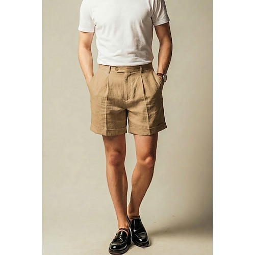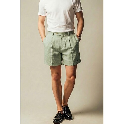 Herren Baumwolle Leinen Freizeithose Sommershorts Lässig Outdoor Urlaub Leicht Alltagstauglich Salbei Braun Beige Sommer Hosen Einfarbig Figurbetonter Schnitt Kurz Unelastisch