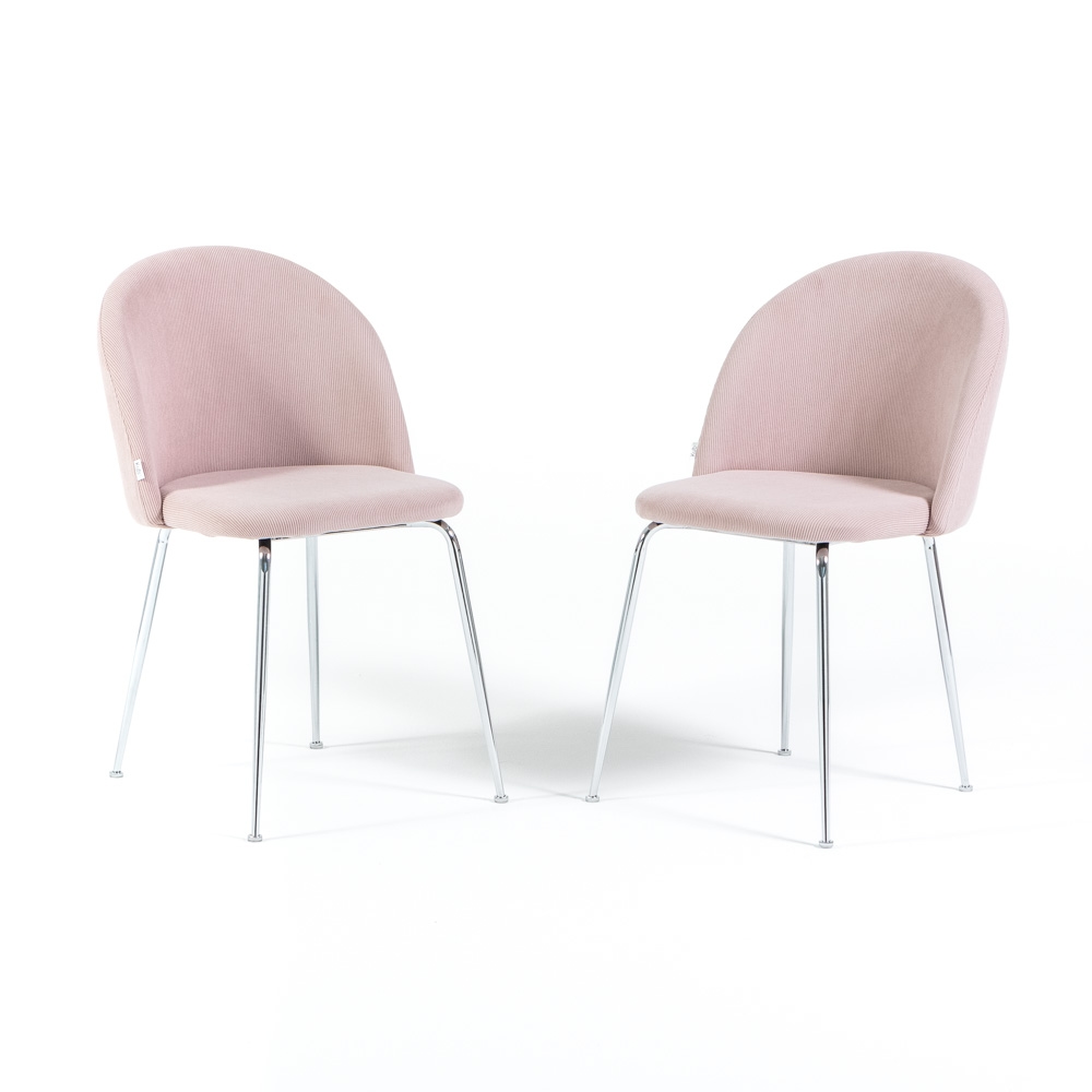 RATTATAN Set aus 2 Innenstühlen aus Cordsamt mit Metallbeinen, gepolstert, ideal für Küche, Esszimmer, Bar oder Restaurant – Sara – Rosa/Silber
