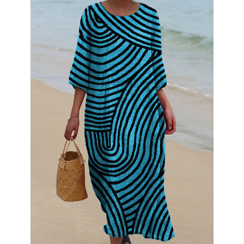 Women's Midi Dress Casual Dress Print Dress Fashion Modern Daily Beach Weekend Regular Fit Line 3/4 Length Sleeve Crew Neck Blue Red Purple Green Spring Fall