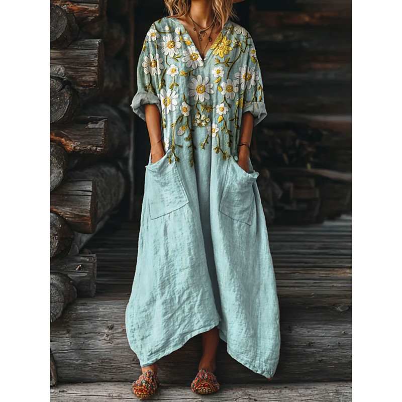 Women's Midi Dress Maxi Dress A Line Dress Vacation Casual Loose Fit Graphic Geometric Abstract Long Sleeve V Neck Blue Purple Green Beige Spring Fall