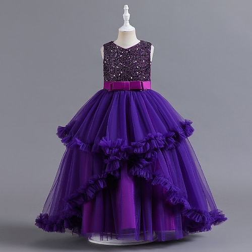 Blumenmädchenkleid Mädchen Formelle Kleidung Hochzeitskleidung Party Hochzeit Formell Mode Niedlich Formell Pailletten Patchwork Einfarbig Ärmellos V-Ausschnitt Blau Rosa Ab 4 Jahren