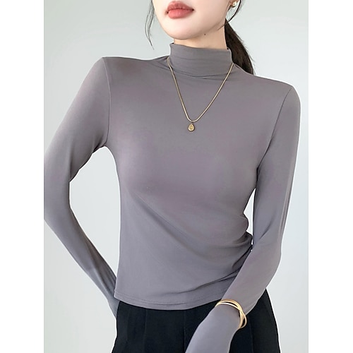 Per donna Blusa Tinta unica Elegante Casual Manica Lunga Dolcevita Top Regolari Quotidiano Arricciato Nero Bianco Vino Marrone Verde Primavera Autunno Inverno