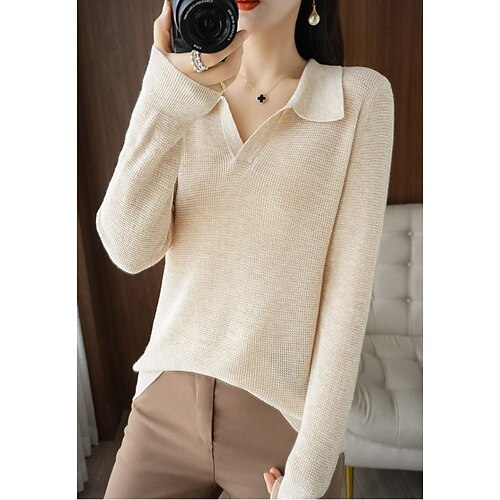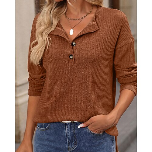 Per donna Blusa Tinta unica Elegante Casual Manica Lunga Girocollo Top Regolari Quotidiano Nero Verde militare Marrone Verde Cachi Primavera Autunno