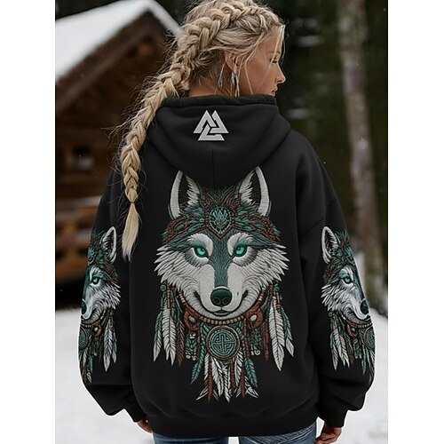 Per donna Felpa con cappuccio Grafico Animale Casual Manica Lunga Con Cappuccio Top Regolari Casuale Streetwear Abbigliamento Quotidiano Tasca Stampato Nero Bianco Rosa Grigio Autunno Inverno