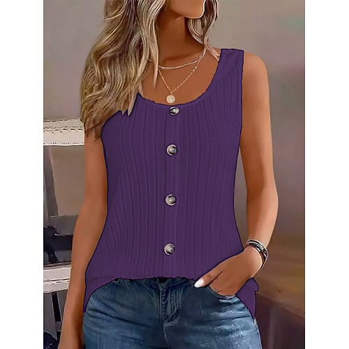 Per donna Maglietta Top estivi Semplice A righe Elegante Moda Carino Senza Maniche Collo a U Top Regolari Quotidiano Uscire Weekend Patchwork Bottoni Nero Verde chiaro Azzurro cielo Viola Grigio