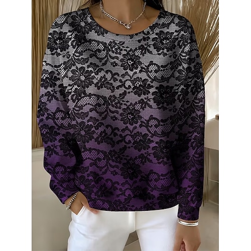 Per donna Maglietta Grafico Geometrico Vintage Moda Casual Manica Lunga Girocollo Top Regolari Quotidiano Cerniera Stampato Nero Rosso Blu Viola Marrone Autunno Inverno
