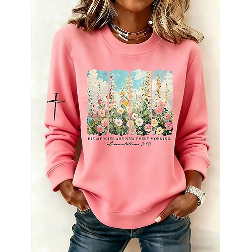 Per donna Felpa Pullover Floreale Vintage Casual Manica Lunga Girocollo Top Regolari Streetwear Abbigliamento Quotidiano Stampato Nero Viola scuro Primavera Autunno Inverno