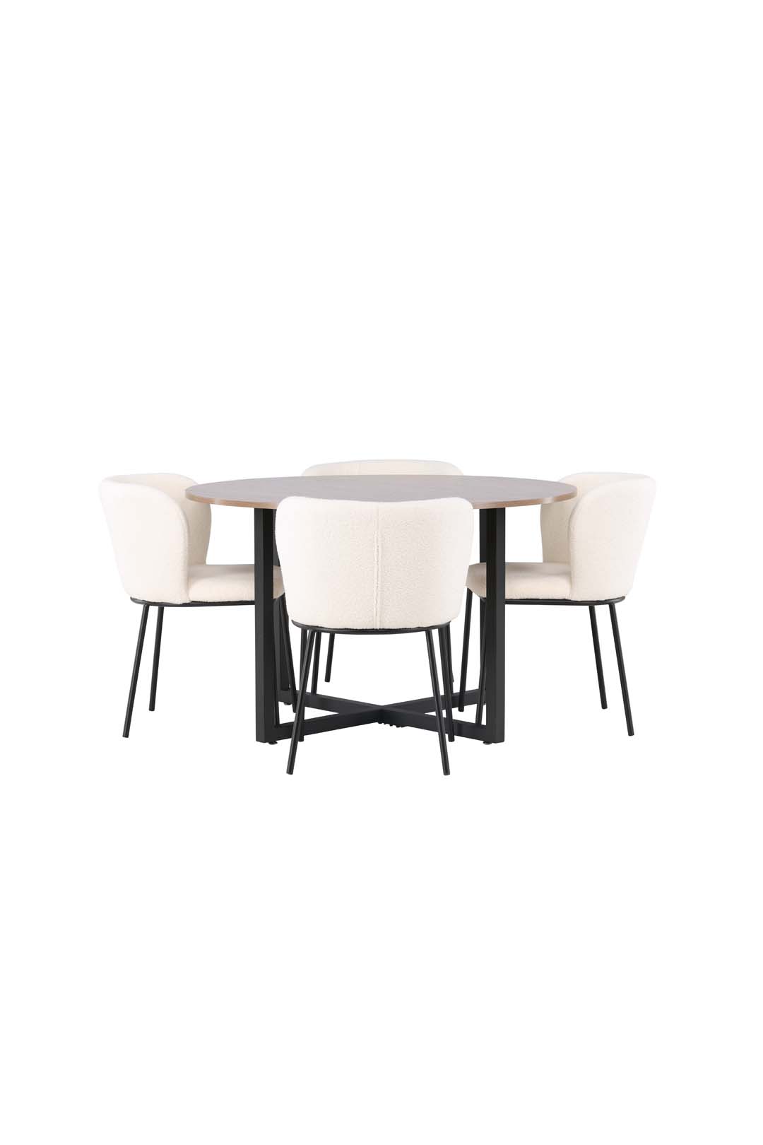 Durango spisebordssæt bord valnød dekor og 4 Edina stole hvid