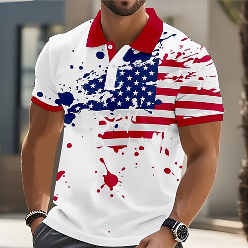 4. Juli 2026 250. Herren Amerikanische Flagge Poloshirts Kurzarm Polo-Shirts Hemden mit Kragen Lässig Athleisure Knöpfe Frühling Sommer Blau Weiß Rote